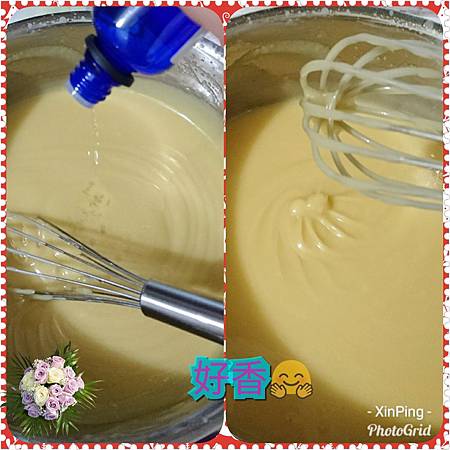 6.接下來就到了放空時間,開始攪拌,打到略微濃可以畫出8(即Trace) 不用太稠,皂液的8可以看見痕跡即加入橘油35g,倒入橘油後再攪拌一下混合均勻
