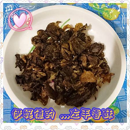嗯,實在很好奇炸左手香的味道,所以吃了一葉,還蠻酥的,酥酥又鬆鬆,還ok,口感很像酥炸九層塔,但沒有九層塔那麼脆,左手香吃起來比較厚實,再吃一葉,嗯,好油歐,咬下去怎麼滿嘴油......餘味還帶點苦......不會再吃第三葉了