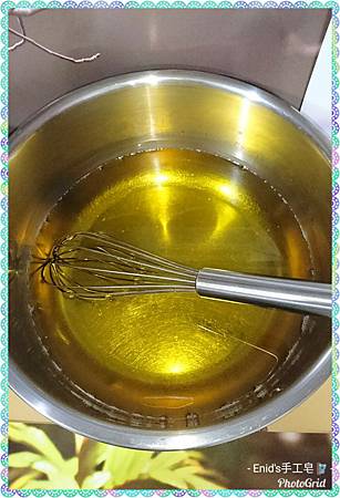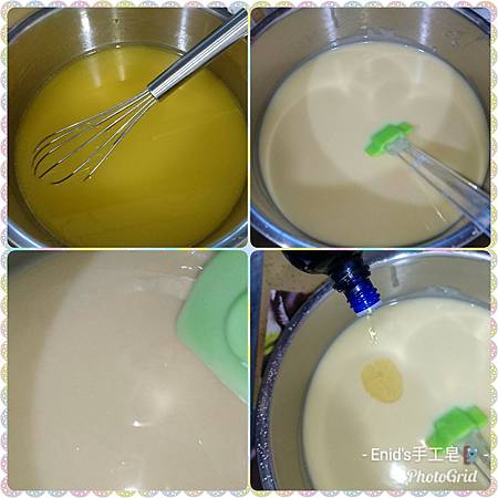 每種品項的油量測好倒入不鏽鋼鍋內混合(硬油要先隔水加熱溶解再混入)