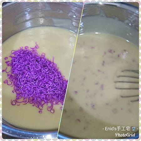 4.打到略微濃稠畫出8後加入馬鞭草精油攪拌,讓精油混合均勻即可