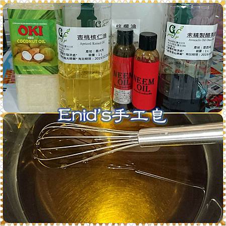 1.隔水加熱椰子油150g/棕櫚油150g,將各油品的油量倒入不鏽鋼鍋內混合