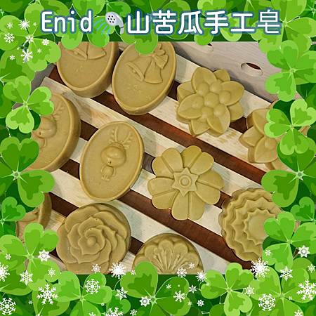 右邊是去年9月份用一般苦瓜做的皂,目前還剩這2顆(已晾皂了半年,顏色已有變淡些了),這放愈久的皂用來洗臉愈溫和,伊妮實在很喜歡,所以就一直晾著它們,這次用山苦瓜入皂顏色比一般苦瓜深色,我想我也會一直晾著它們,讓它們一起慢慢的變老..........皂,苦瓜皂的配方內有苦楝油和未精製酪梨油,這兩款油品的味道比較重,尤其是苦楝,所以放歐薄荷和廣蒮香蓋住一些味道,伊妮的酪梨油是使用未精製的,未精製的可以儘量保留油品的成份