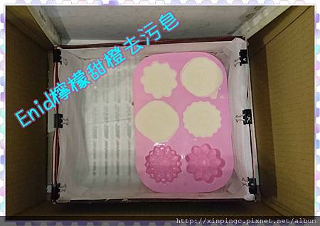 椰油100%,皂很快就硬了(箱內的溫度約45℃),四小時脫模後切皂&蓋皂章