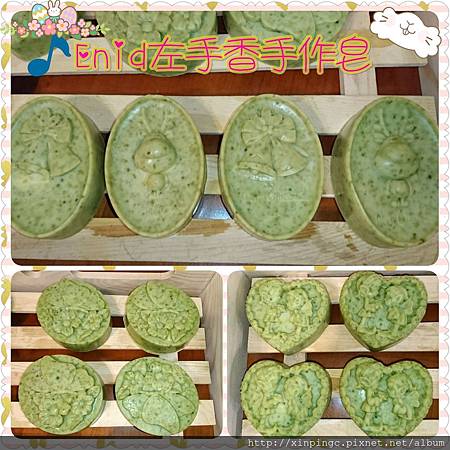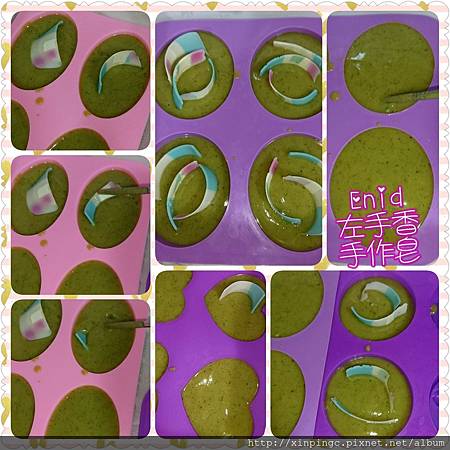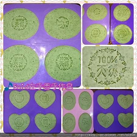 這些皂裡面有包夾心,心想不知皂章會不會卡到皂“片”(還好我不是做成管狀的,卡...卡卡西啦)還是給它蓋了下去,有一組感覺有點中空,因為章蓋下去還會往上彈的感覺