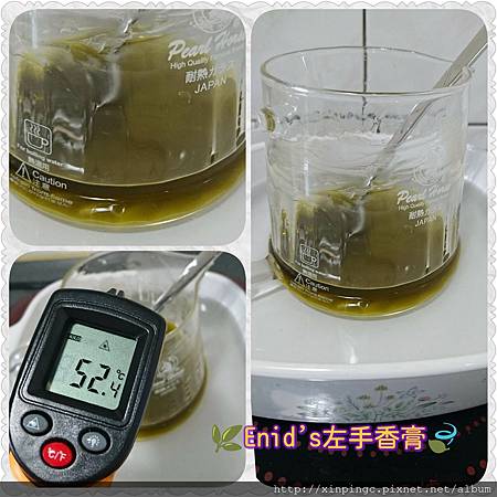 5.測一下溫度60℃以下加精油,攪一攪充份混合