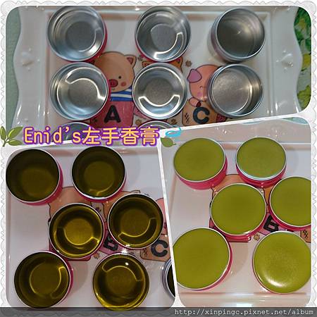 6.罐子己經消毒好了,將左手香膏液倒入,沒多久就變硬了,等它們都涼後再蓋上這盒蓋,完成嚕![]()