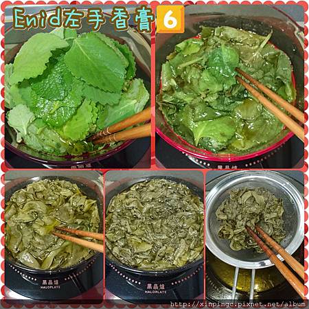 2.葉子比油多,所以慢慢的將葉子每片都泡到油,使用小火慢燉左手香葉,別著急歐,待葉子軟了就都會泡到油囉,伊妮將左手香油燉了約2.5個小時後沒有炸到酥,左手香葉還是軟軟的就夾起來過濾掉,伊妮心想也油燉那麼久了,誠意也夠了,精油也該出來跟油麻吉一下了吧,這萬一有細菌,也差不多都炸死了唄