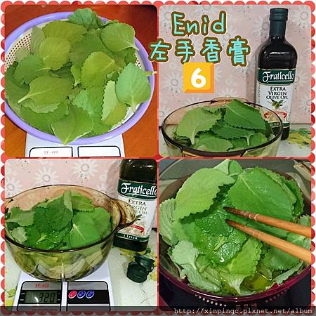 1.左手香去枝留葉後清水洗淨,經過一晚的晾乾後重量約200g,橄欖油是剛買的還沒開封,所以很新鮮,因油炸左手香會耗損油,所以我倒入橄欖油320g(這批VI需要左手香橄欖油210g,再加上還想要另外製作一小批無涼左手香膏需要100g