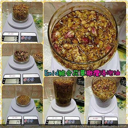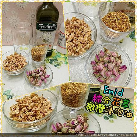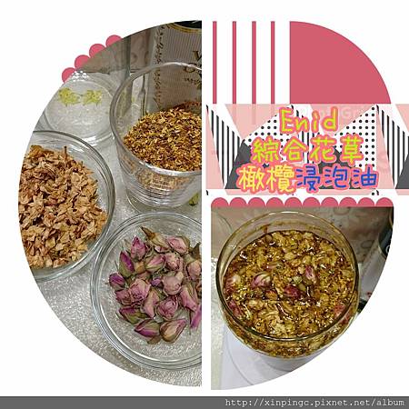 這茉莉花/玫瑰花/桂花都是伊妮會混著沖泡的花茶,想著想著就也來泡個油吧,這一瓶基底油使用橄欖油