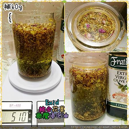 伊妮看著看著,覺得好像不夠滿,又補了約60g的油(橄欖油共570g)