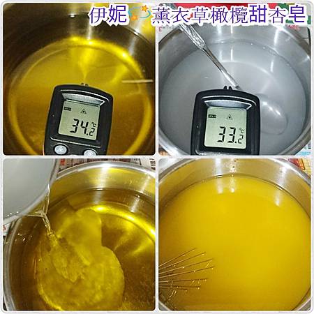量測油脂和鹼液的溫度,35℃左右且溫差不超過5℃就可以將鹼液倒入油脂內