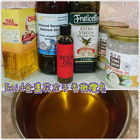 把每種品項的油量測好倒入不鏽鋼鍋內混合,椰子油要先隔水加熱融化後再倒入混合