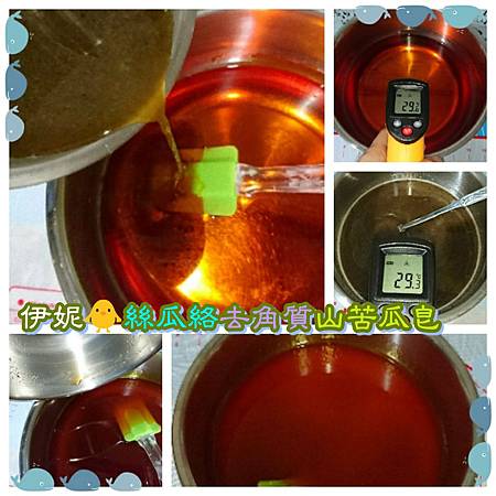 伊妮打皂時溫度大都控制在35℃左右且兩者溫差不超過5℃再混合鹼液和油脂