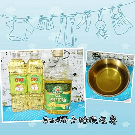 1.準備好椰子油1400g和芥花油200g,倒入不鏽鋼鍋內混合