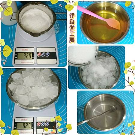 >把需要的油脂量測好重量後倒入不鏽鋼鍋內混合