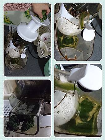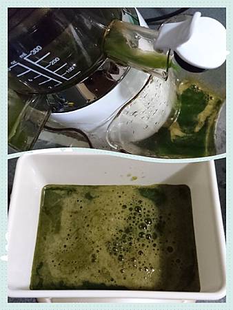 左手香去汁留葉後==>洗淨==>丟到慢磨機內磨成汁