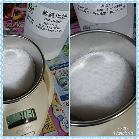 2.準備氫氧化鈉,這時一定要戴上手套/護目鏡/口罩,這是打皂一定要特別注意的,怕危險